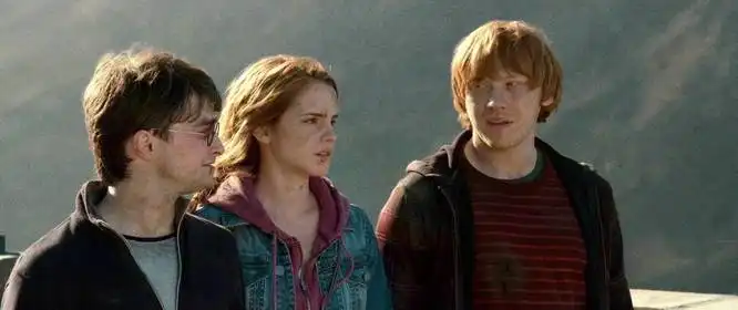 Параллельно раскрывается множество романтических и семейных взаимоотношений, которые оживляют вселенную. Любовная линия между Роном и Гермионой показана не как простой сюжетный ход, а как эволюция чувств, выросших из многолетней дружбы и взаимного уважения. Воссозданные сцены и воспоминания актёров показывают неловкость, ревность и искренность, которые делали их связь правдоподобной. Отношения Гарри и Джинни, показанные в фильме, получают контекст взросления: от робких симпатий к партнерству, основанному на взаимном понимании пережитых травм и надежд. Семейные узы Уизли, их тепло и бытовая мудрость, раскрывают тему выбора семьи не только по крови, но и по сердцу. Атмосфера Weasley — это постоянный эмоциональный центр, место, где герои находили убежище и поддержку.