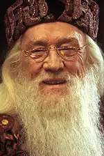 Дамблдор в фильме представлен как мудрый, спокойный и немного загадочный наставник. Его отношения с Гарри наполнены вниманием и деликатностью, но лишены чрезмерной опеки. Дамблдор скорее направляет, нежели управляет, оставляя Гарри пространство для самостоятельных решений. Между Дамблдором и Гарри присутствует глубокое уважение и тихая привязанность, которая позже объяснит готовность Гарри доверять мудрому директору. Отношения Дамблдора с остальными преподавателями, особенно с Макгонегелл, показывают профессиональную солидарность и взаимное уважение, что создаёт атмосферу надежности вокруг учебного заведения.