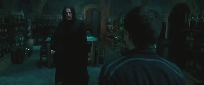 Снейп — сложный и многогранный персонаж, чьи отношения с Гарри приобретают особую остроту в этой части. Уроки окклюменции между ними становятся ареной психологического противостояния: Снейп пытается защитить Дамблдора и при этом контролировать эмоциональное пространство Гарри, в то время как Гарри испытывает враждебность и недоверие к нему. Взаимоотношения Снейпа и Гарри полны старой обиды и неоднозначных мотивов, что подчеркивает тему наследия прошлого и его влияния на настоящее. В фильме эти сцены интенсивны и болезненны, они показывают, как прошлые раны и недоразумения продолжают определять поведение героев.