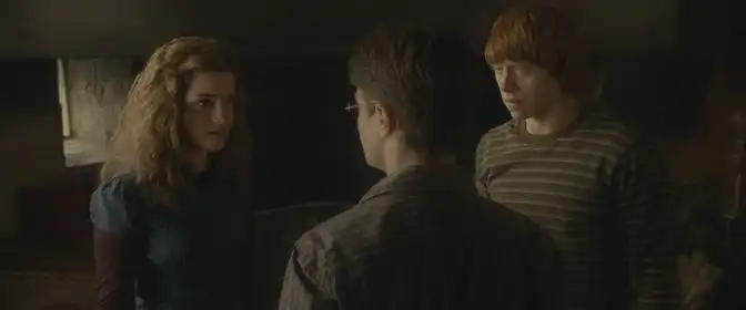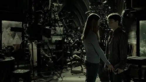 Любовная линия между Гарри и Джинни Уизли развивается более тонко и задолго до кульминации фильма. Их отношения обретают новые уровни зрелости: Джинни становится самостоятельнее и решительнее, а Гарри впервые испытывает настоящие романтические чувства, которые дают ему не только утешение, но и мотивацию. Визуальное воплощение их связи происходит через нежные, но ограниченные по времени сцены, где предпочтение отдается взглядам и едва заметным жестам, что усиливает ощущение искренности и постепенного созревания отношений на фоне надвигающейся угрозы.